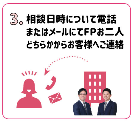 担当者からは、メール、お電話、ショートメールいずれかの方法でご連絡いたします。